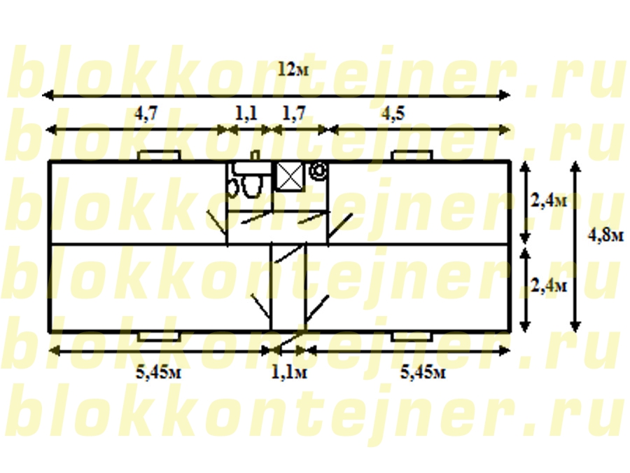 Модульное здание 12*4,8*2,5 м.-1шт.,  состоит из 2-х  БК  12,0*2,4*2,5 м.