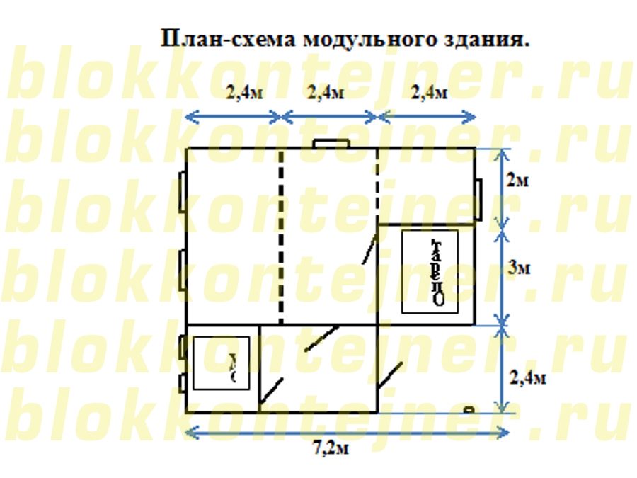 Модульное здание  «Офис» -  7,2 *7,4*2,5м  состоит из 4 шт. Блок-Контейнеров (1 этаж)