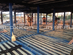 Многослойная конструкция пола укладывается и закрепляется в нижней раме каркаса с уплотнением зазоров утеплителем: